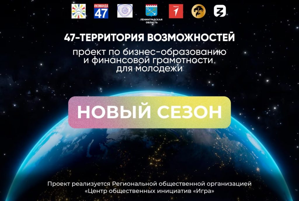Проект молодёжных инициатив в сфере предпринимательства и финансовой грамотности «47-Территория Возможностей» реализуется региональной общественной организацией «Центр общественных инициатив «Игра» на средства гранта Губернатора Ленинградской области при поддержке Комитета общественных коммуникаций Ленинградской области. В партнерстве с Филиалом Российского общества «Знание» в Ленинградской области и региональным отделением общероссийского общественно-государственного движения «Движение Первых».